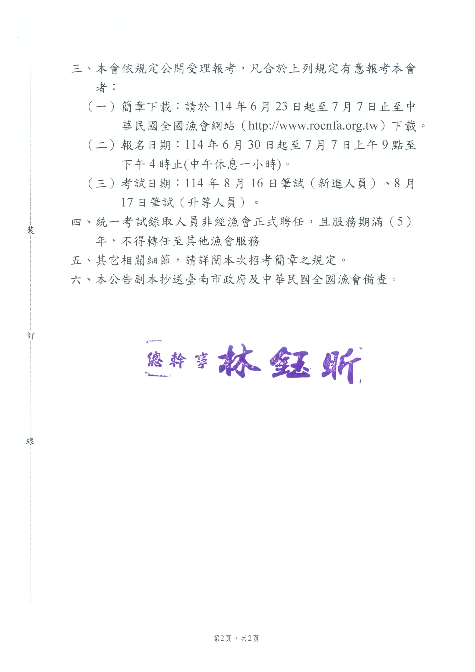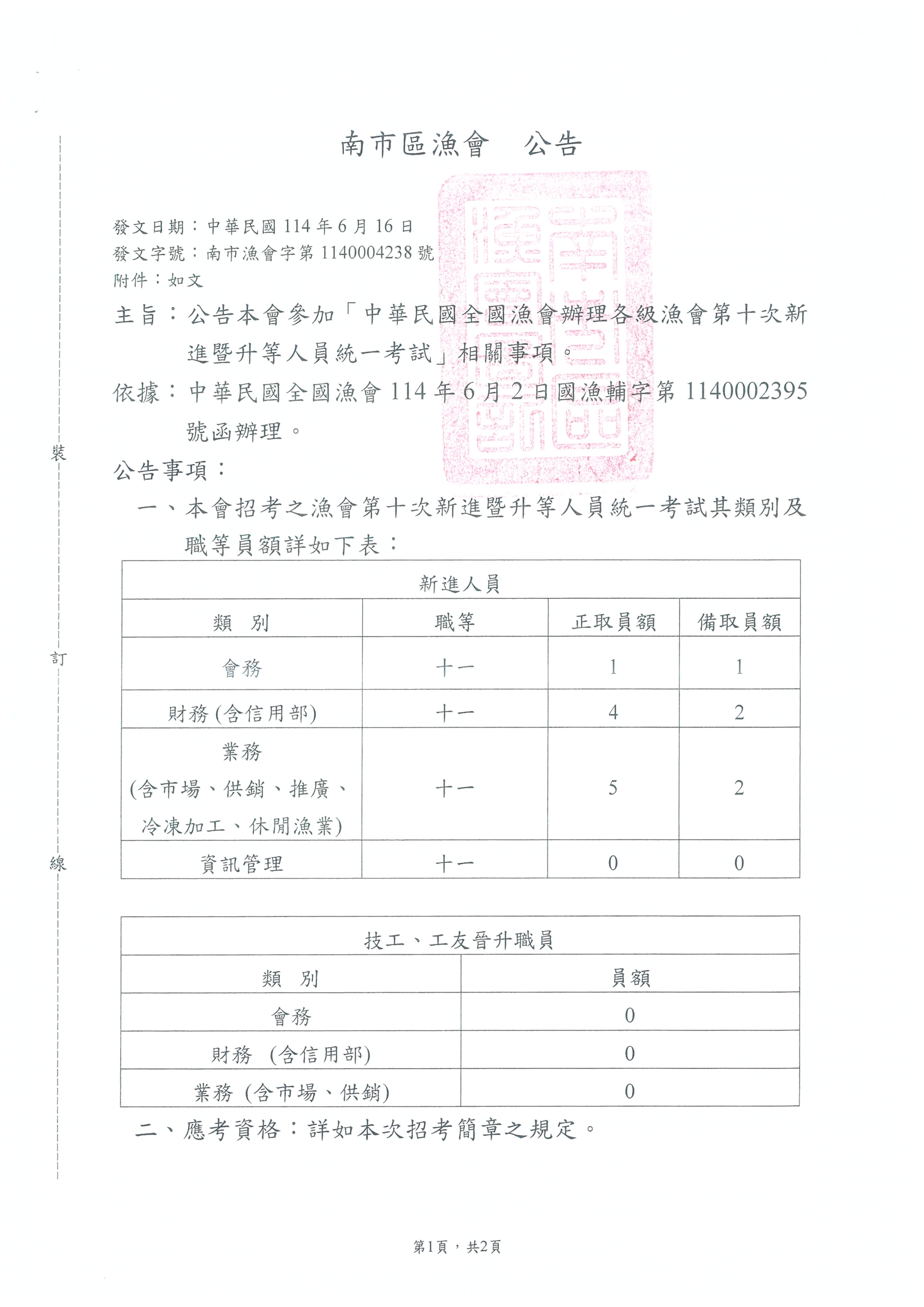 公告本會參加「中華民國漁會辦理各級漁會第十次新進暨升等人員統一考試」相關事宜