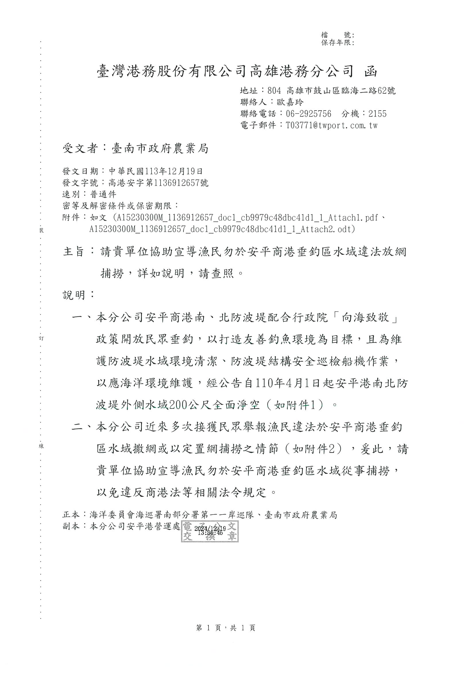 安平漁港垂釣區違法放網捕撈 公告2024.12.25 /wp-content/uploads/2023/06/0617-logo01-e1689840865899.png 0 0 tnfs70841 /wp-content/uploads/2023/06/0617-logo01-e1689840865899.png tnfs708412024-12-25 16:07:582024-12-25 16:07:58安平漁港垂釣區違法放網捕撈 公告