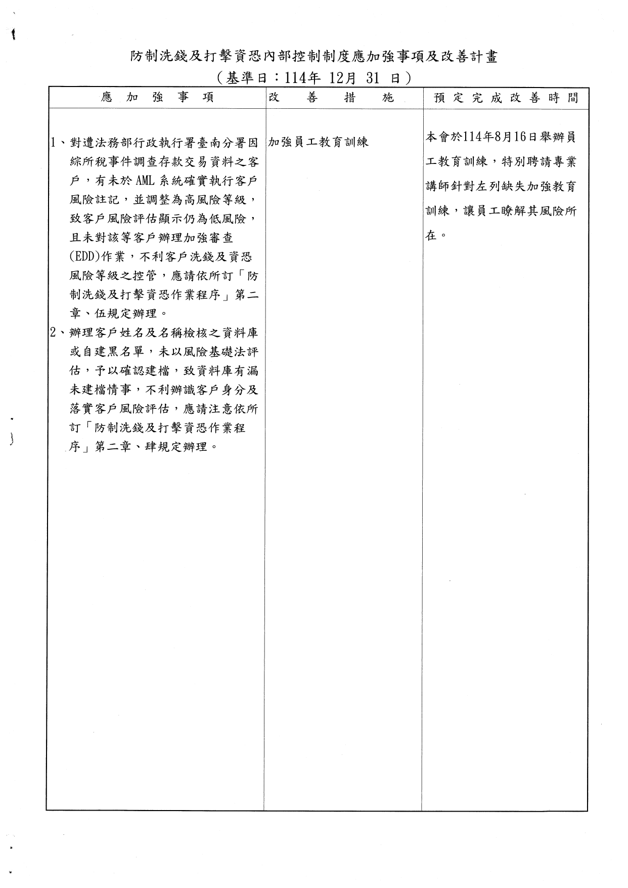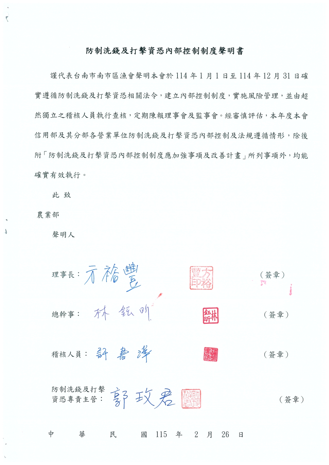 114年防制洗錢及打擊資恐內部控制制度聲明書及應加強事項、改善計畫2026.3.12 /wp-content/uploads/2023/06/0617-logo01-e1689840865899.png 0 0 tnfs70841 /wp-content/uploads/2023/06/0617-logo01-e1689840865899.png tnfs708412026-03-12 10:08:302026-03-12 10:10:06114年防制洗錢及打擊資恐內部控制制度聲明書及應加強事項、改善計畫